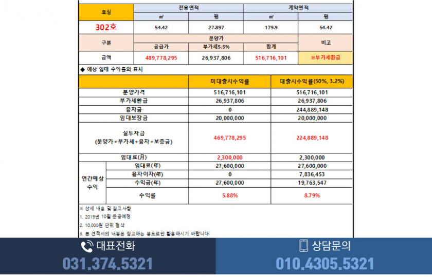 ※ 무대출시 5.7%, 50%대출시 8.7%, 60%대출시 10% 수익